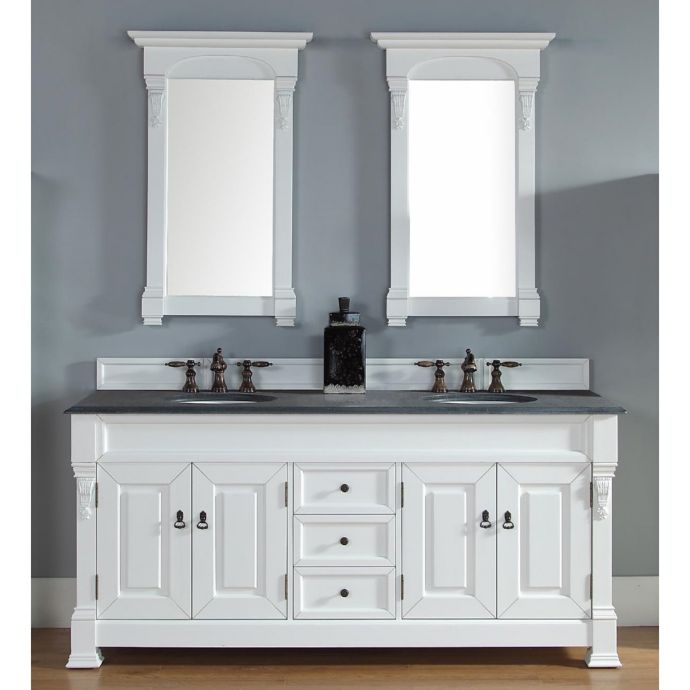 Abstron 72 inch antique black double bathroom vanity optional countertops, satin nickel finish hardware, 2 door 2 drawer, soft closing hinges for doors and abstron 72 inch double bathroom vanities optional countertops are one of the most challenging pieces of furniture produced today. The grand scale james martin brookfield 60 in. Cottage white, antique black, burnished mahogany, warm cherry, urban gray and country oak. Brookfield comes in 26, 35, 36, 48 and 60 single and 60 and 72 double sink widths. The brookfield 72, double sink, antique black vanity by james martin furniture features hand carved accenting filigrees and raised panel doors.